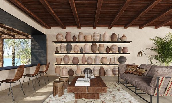Phong cách này không hướng đến sự xa hoa, mà chú trọng tính thư giãn, thoải mái và chân thật. Thiết kế tối giản, thường bo tròn và uốn cong nhẹ. Vật liệu tự nhiên như bàn ghế gỗ, sofa vải line, ghế mây hoặc sắt rèn cổ điển; trang trí phụ kiện thủ công như đèn treo sắt rèn, bình gốm, gương khung gỗ. Mỗi chi tiết đơn giản đều có tính hồn tạo nên sự tinh tế và cảm giác ấm cúng cho căn nhà.