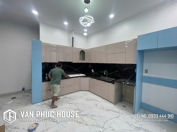 Không gian bếp được hoàn thiện với hệ tủ nhôm cánh kính – giải pháp tối ưu cho nhà hiện đại: