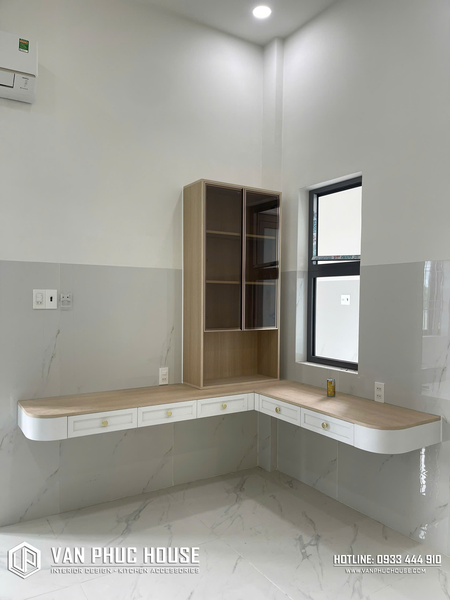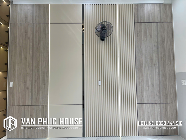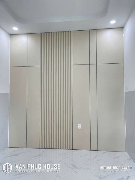 Sự kết hợp giữa màu be trung tính và vân gỗ nhẹ nhàng mang lại cảm giác ấm áp nhưng vẫn hiện đại. Vạn Phúc House luôn đảm bảo thi công chuẩn xác, các đường lam đều, thẳng và sắc nét.