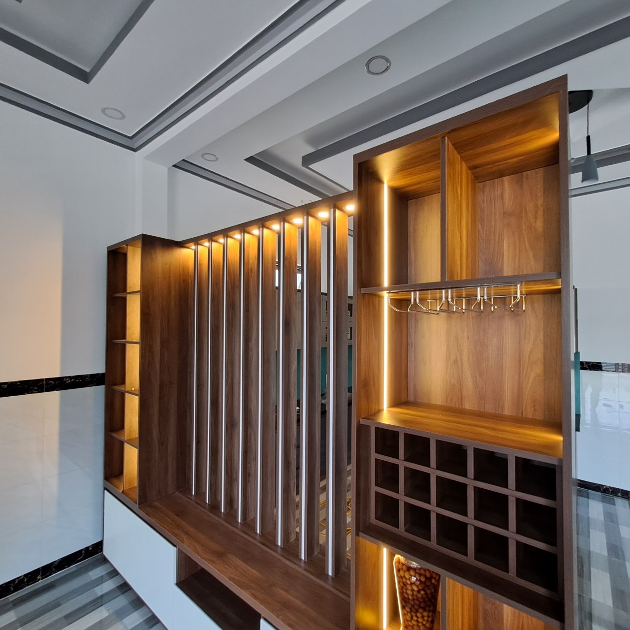 - Tủ rượu, tủ trang trí cánh kính công nghệ mới - có đèn LED