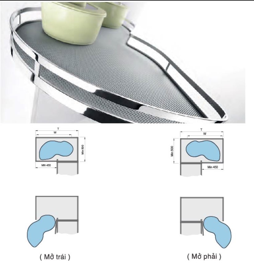 Kệ chiếc lá mở trái – phải (900mm): Chiếc kệ vừa tận dụng được diện tích không dùng đến ở góc tủ, vừa giúp nhà bếp của bạn gọn gàng, tiện nghi và vô cùng sang trọng. Được làm bằng chất liệu inox 304 chính hãng Higold, bạn không phải lo sợ sản phẩm bị gỉ sét.