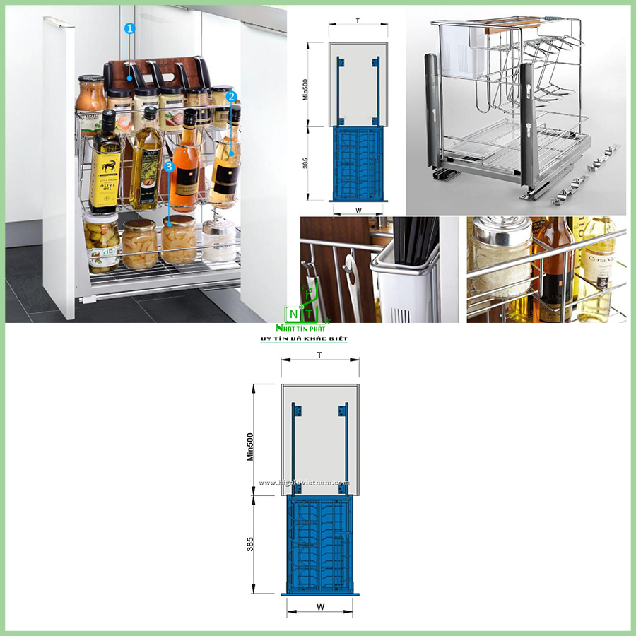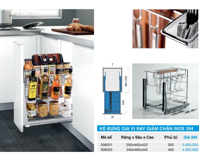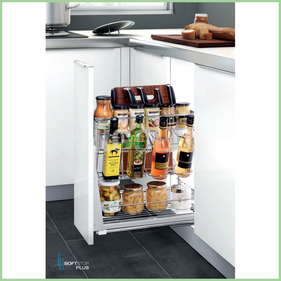 Kệ gia vị ray giảm chấn Higold của MIDACO phân phối có thiết kế nhỏ gọn nhưng chứa được rất nhiều hũ, chai, lọ nhờ thiết kế thông minh tận dụng mọi góc cạnh. Cùng với chất liệu inox 304 cao cấp này bạn sẽ không gặp nhiều khó khăn trong việc vệ sinh kệ gia vị, do kệ có thể âm tủ nên càng hạn chế được bụi bẩn và côn trùng tiếp cận.