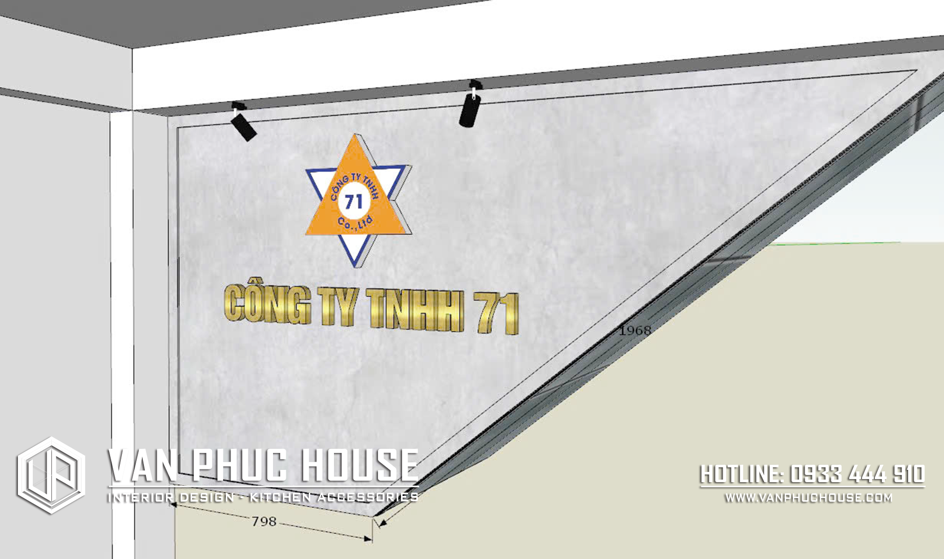 💯 Vật tư chính: Nền MDF vân bê tông Mộc Phát, có viền và chỉ xung quanh, gia cố khung xương gỗ. Logo, chữ nổi, Mica có đèn LED, logo in UV xuyên đèn kết hợp bộ chữ Inox có đèn dạ chân, Mica cháo. Đèn rọi lắp gắn tường