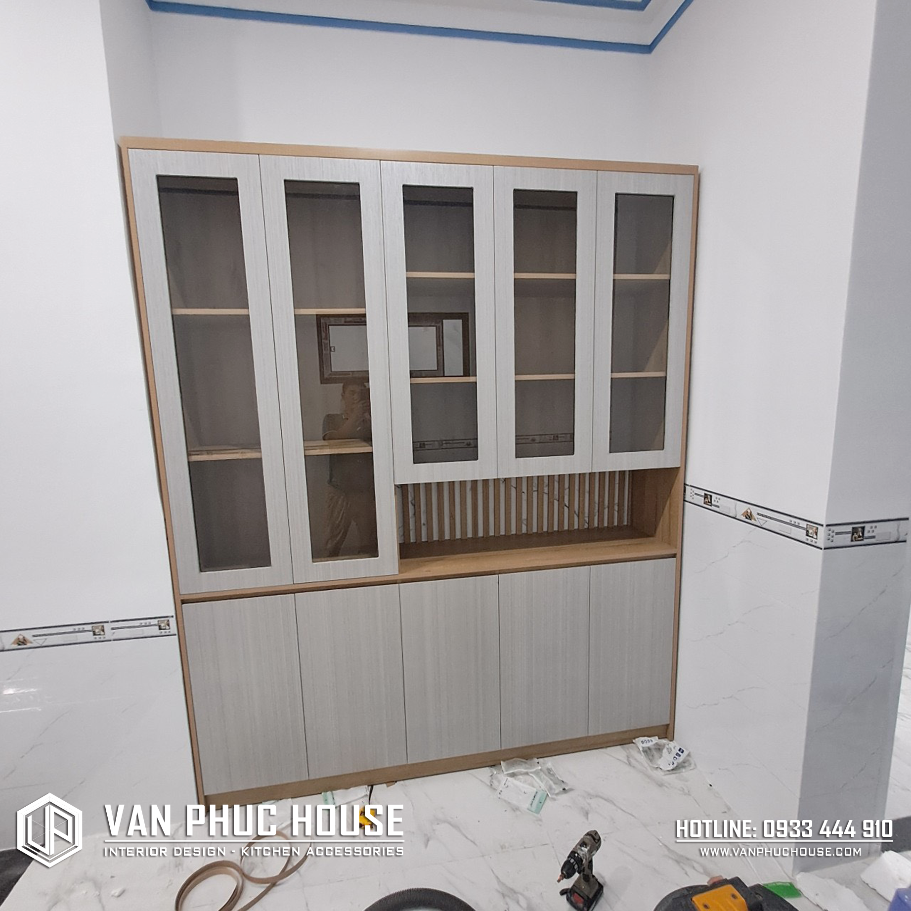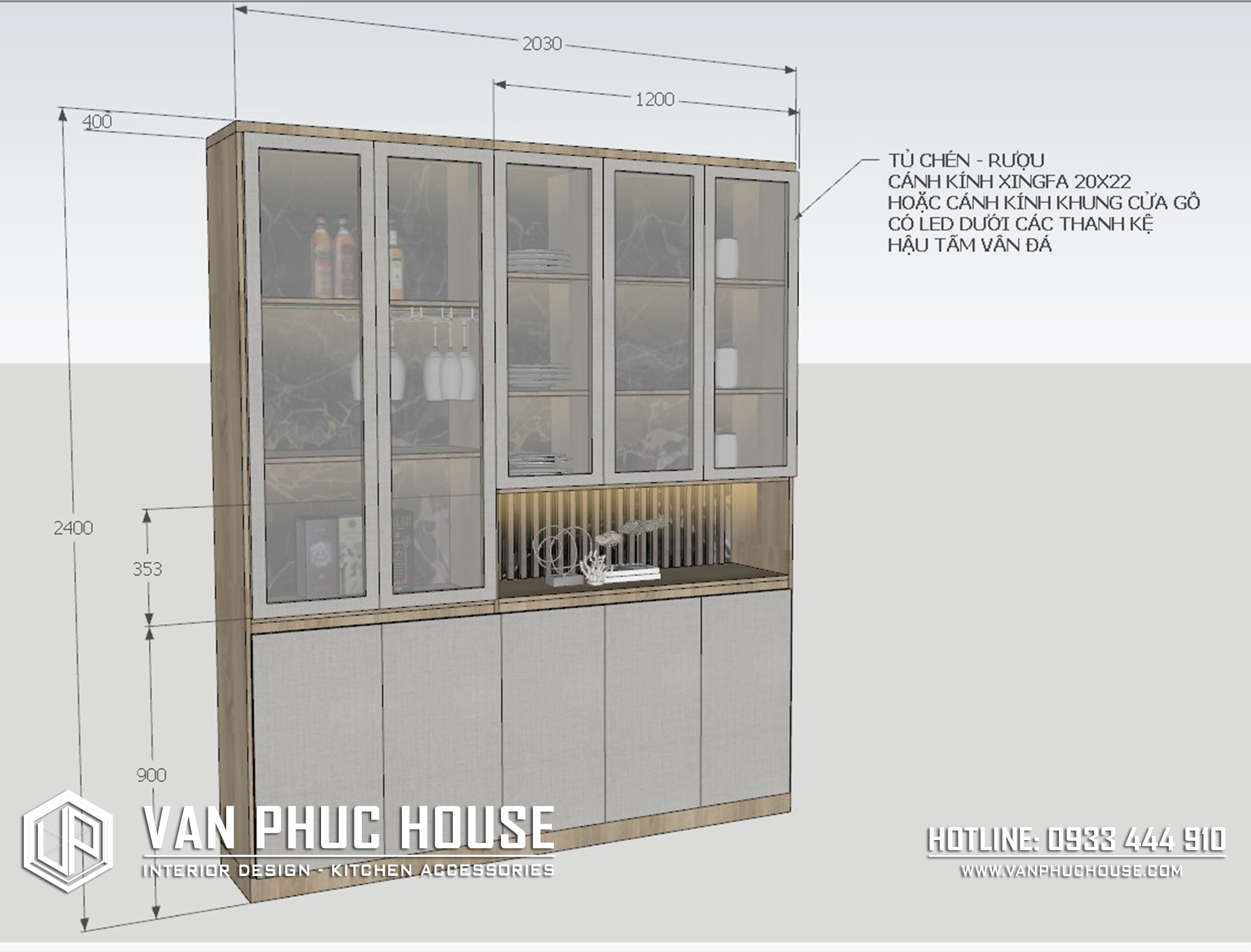 1. Tủ chén-rượu: Gỗ MDF chống ẩm phủ melamin - Gỗ Mộc Phát