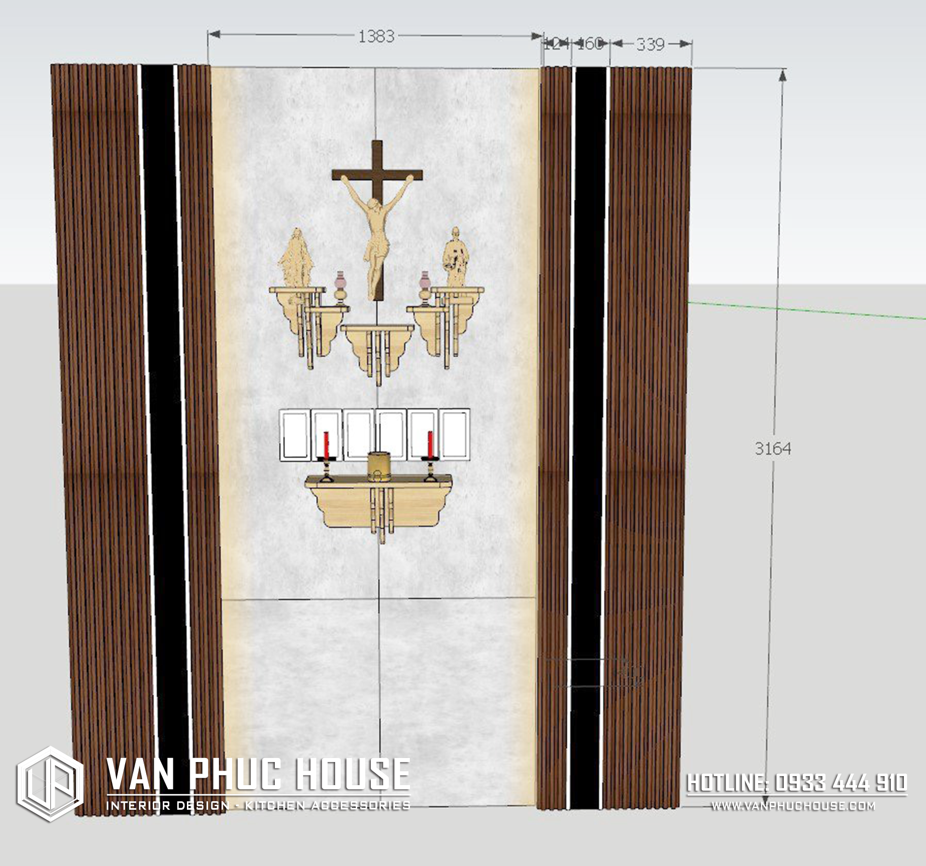 4. Ốp tường trang thờ chúa: MDF chống ẩm phủ melamin kết hợp nẹp chỉ U đen